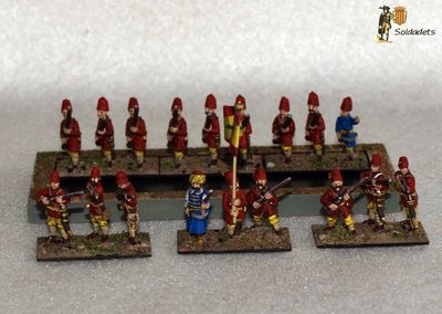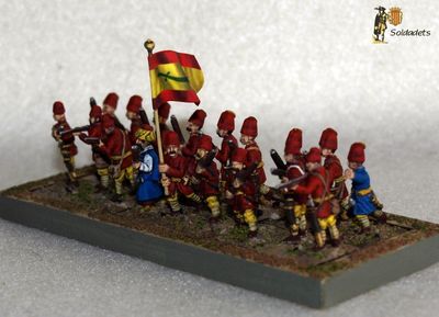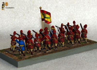 Aquí teniu una nova unitat de fusellers de muntanya de la Guerra de Successió Espanyola, composada quasi en exlcusiva per figures de la marca australiana Eureka, amb l'única excepció d'un fuseller solitari que és de la britànica Roundway. Hi he volgut representar el regiment o partida de fusellers reunit pel general Moragues i el coronel Llirós, que va ser singularment activa al Pirineu, des del Pallars al Ripollès.