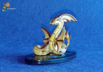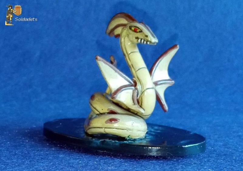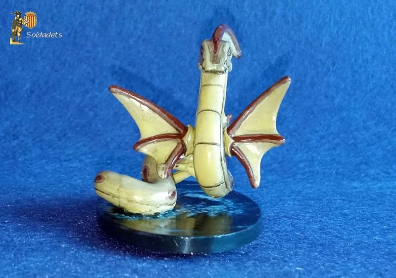 S'esdevé que aleshores anava jo cercant models de criatures mítiques marines, per emprar a les nostres partides de wargame naval; ja fos com a simple peça decorativa o per introduir elements inesperats al joc. I aquesta joguina hi anava de perles; només calia pintar-la amb una mica de gràcia i emplaçar-la en una base adient. Potser paga la pena destacar que aquest cop he envernissat la criatura amb vernís lluent en lloc de mat, per donar la impressió que la bèstia és xopa.