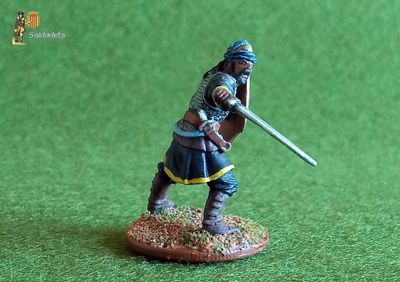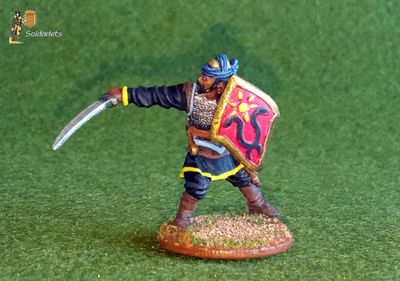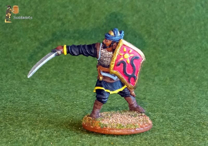 Segueixo amb la tasca començada mesos enrere de mostrar-vos figures i models acabats fa temps, però que per un motiu o altre no us havia mostrat en aquest blog. En aquesta ocasió, es tracta d'una altra figura de la meva col·lecció de la Terra Mitjana, de la coneguda casa Mithril com de costum. La figura representa un guerrer de Hàrad amb escut, simitarra i cota de malla.