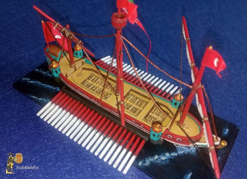 Aquest model constitueix la darrera producció de Minairons abans del seu tancament definitiu, una galiassa veneciana de finals del segle XVII o principis del XVIII basada en un vaixell històric real, la "Gabriella" de 1654. El model concret que vaig utilitzar era un prototip defectuós, amb la proa mal conformada i els rems trencats, no apte per a la venda. En lloc del velam desplegat que originalment hi pertocava, vaig proveir el vaixell amb un joc de pals amb velam recollit de la marca Skytrex --que, com podeu veure, queden prou bé.