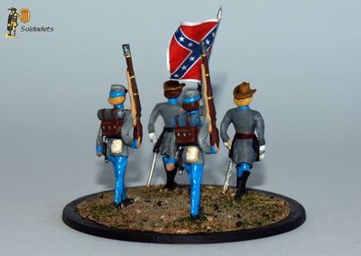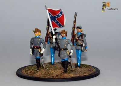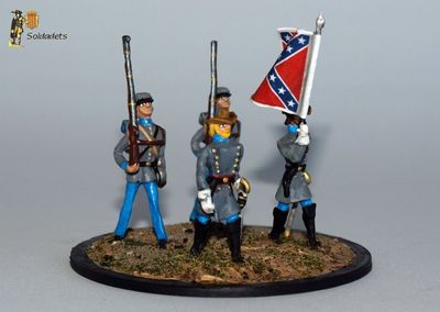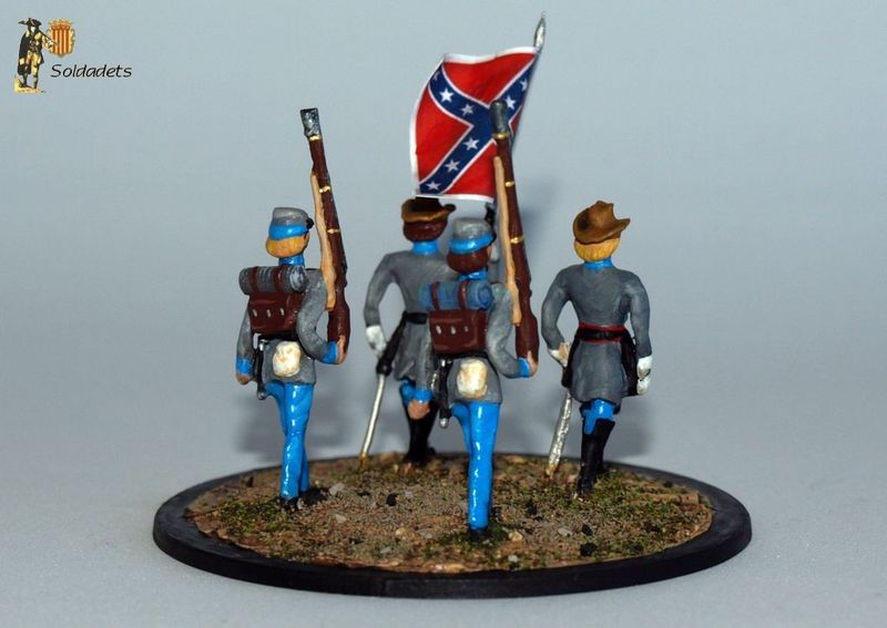 Seguint aquesta mateixa filosofia, he reemplaçat la bandera de llautó pintada a mà que hi havia originalment per una de quadrada amb vora blanca, feta de paper com acostumo, tal com les utilitzava l'exèrcit de Virgínia del nord (ANV); força que de lluny era la més ben organitzada i equipada de tota la Confederació i on no resultaria tan extremadament difícil trobar-hi algun regiment uniformat d'acord amb les ordenances.